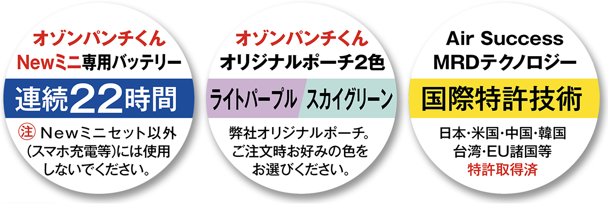 (注):Newオゾンパンチくんは弊社のオリジナル商品のため、と上場企業「夢みつけ隊株式会社」様との特別限定企画のため、他のネット販売等では購入することはできません。